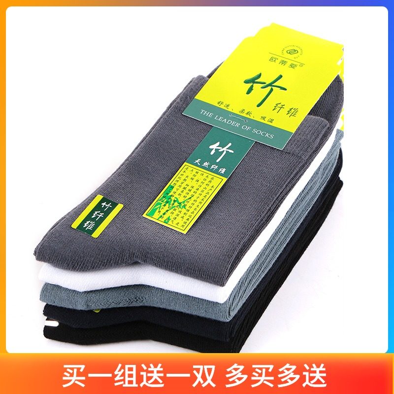 欧蒂爱竹纤维袜子男秋季中筒男士厚长袜竹炭抗菌防臭袜冬季松口袜