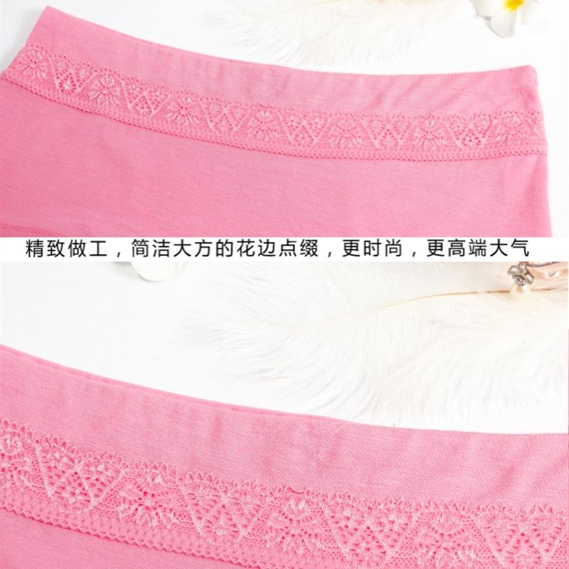 4条装 莫代尔中腰女士内裤女性感蕾丝边纯棉抗菌竹炭纤维三角裤头
