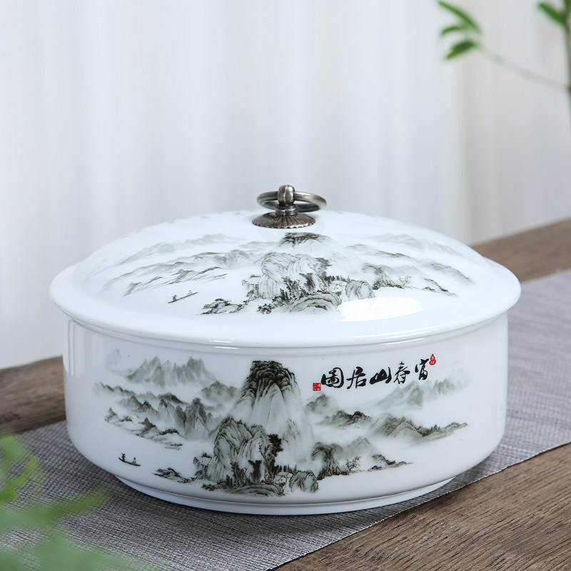 青花瓷陶瓷茶洗带盖大号茶碗笔洗普洱茶叶罐茶饼功夫茶具茶道配件