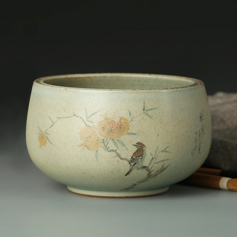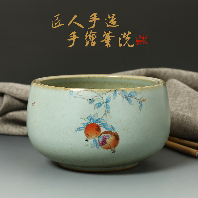 匠人手绘秋实图大笔洗仿古瓷器摆件景德镇陶瓷中式水盂文房笔洗缸