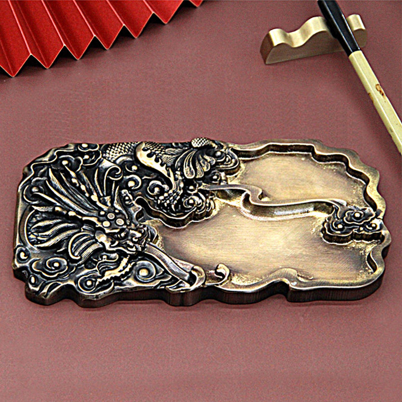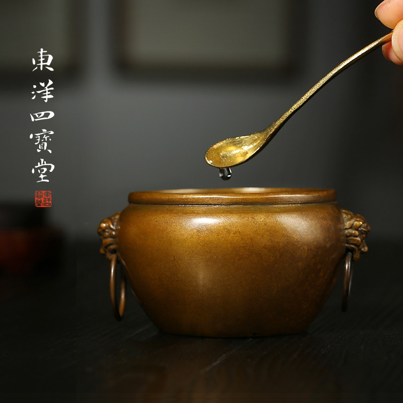 御宝阁黄铜水勺水盂笔洗墨条砚台砚滴加水文房四宝毛笔字国画书法工具端砚文玩书法用品手工墨池模墨水铜勺子