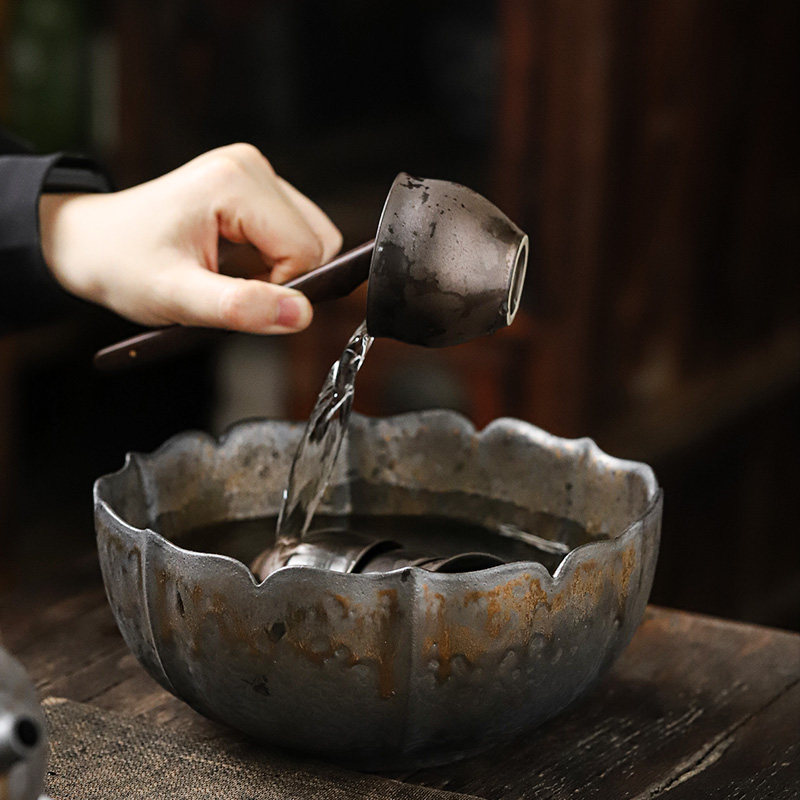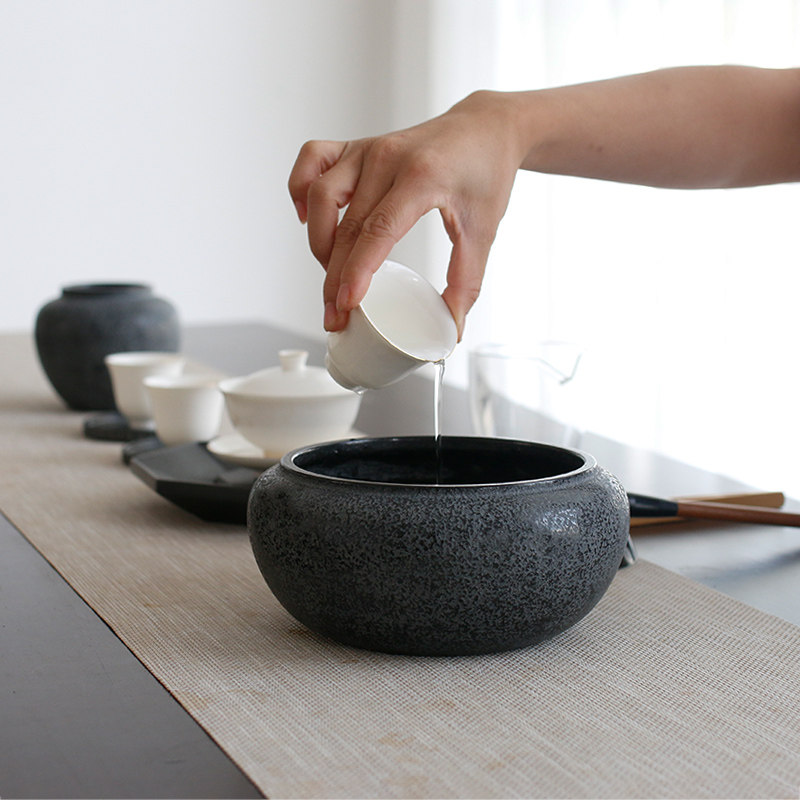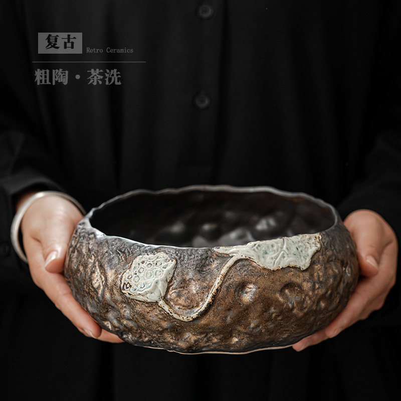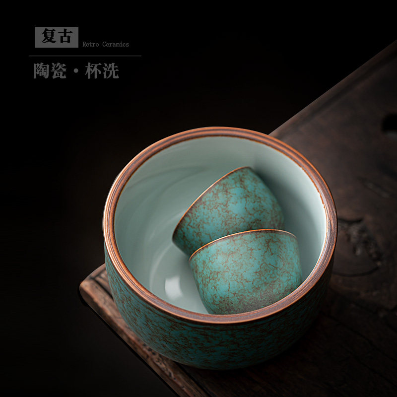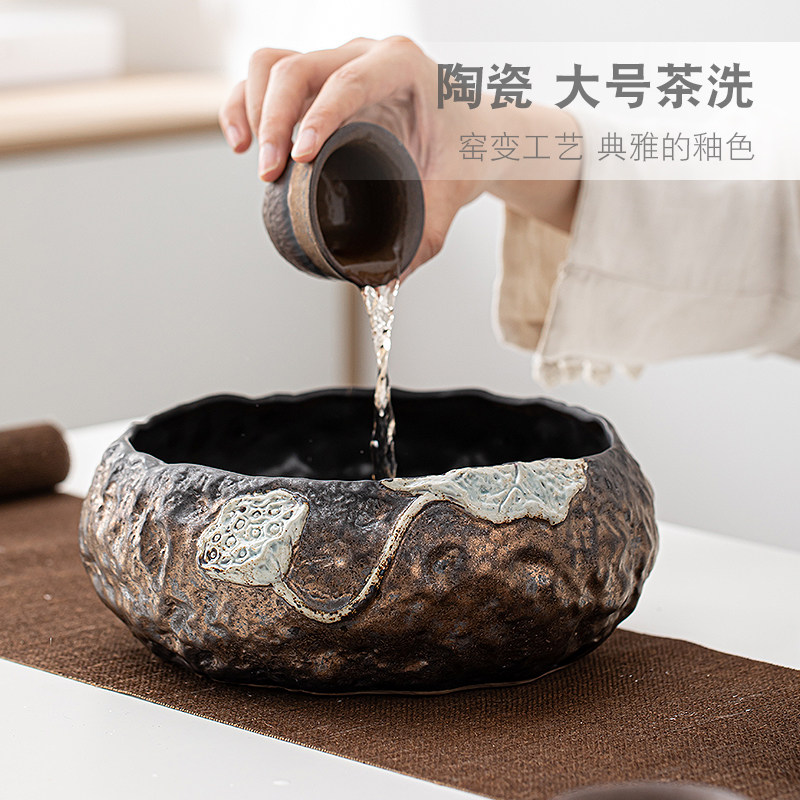 遇素复古陶瓷茶洗大号茶杯洗中式水盂功夫茶具配件茶渣缸粗陶笔洗