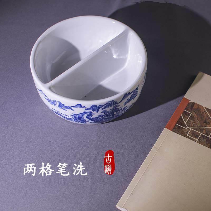德镇瓷二彩格花三碗格青笔洗水洗调色盘墨墨池水国景画颜陶料水盂