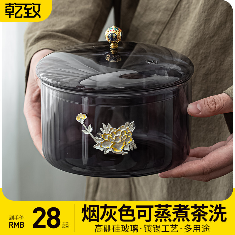 耐热玻璃茶洗家用水盂有带盖大小号透明水洗洗茶碗杯盆器皿笔洗缸