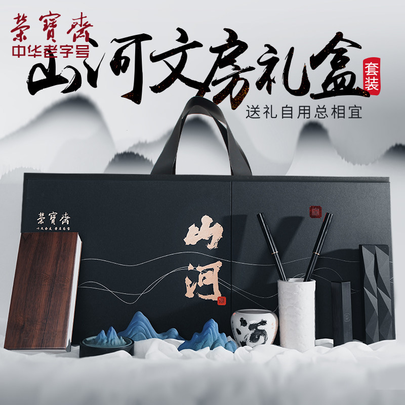荣宝斋文房四宝套装观沧海笔墨纸砚瓷器书法国画作品专用初学者笔筒水盂笔搁笔洗墨锭毛笔砚台套装礼盒