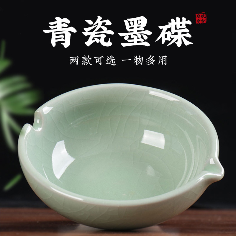 书法墨碟陶瓷墨汁墨盒砚台书法专用墨盘陶瓷墨碟笔洗笔搁墨水碟文房四宝墨池毛笔墨蝶水碟瓷碟砚毛笔架笔挂