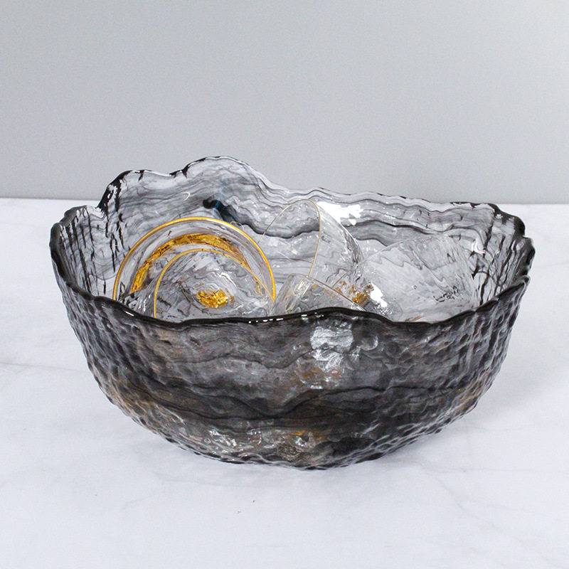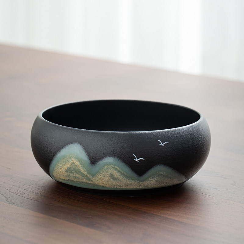 水墨黑色茶洗锤纹玻璃加厚水洗杯洗笔洗沙拉碗功夫茶具茶道碗果盘