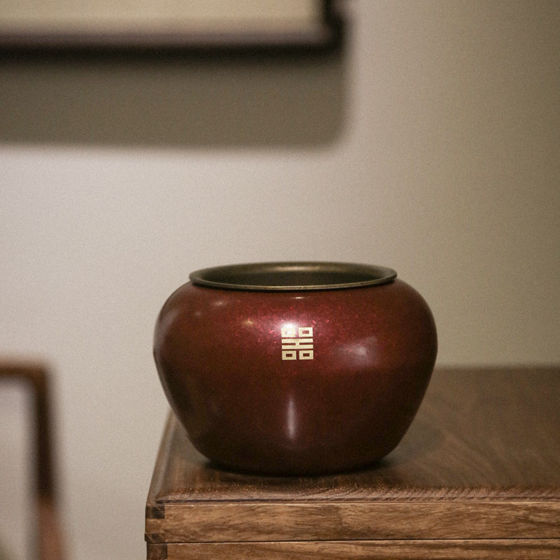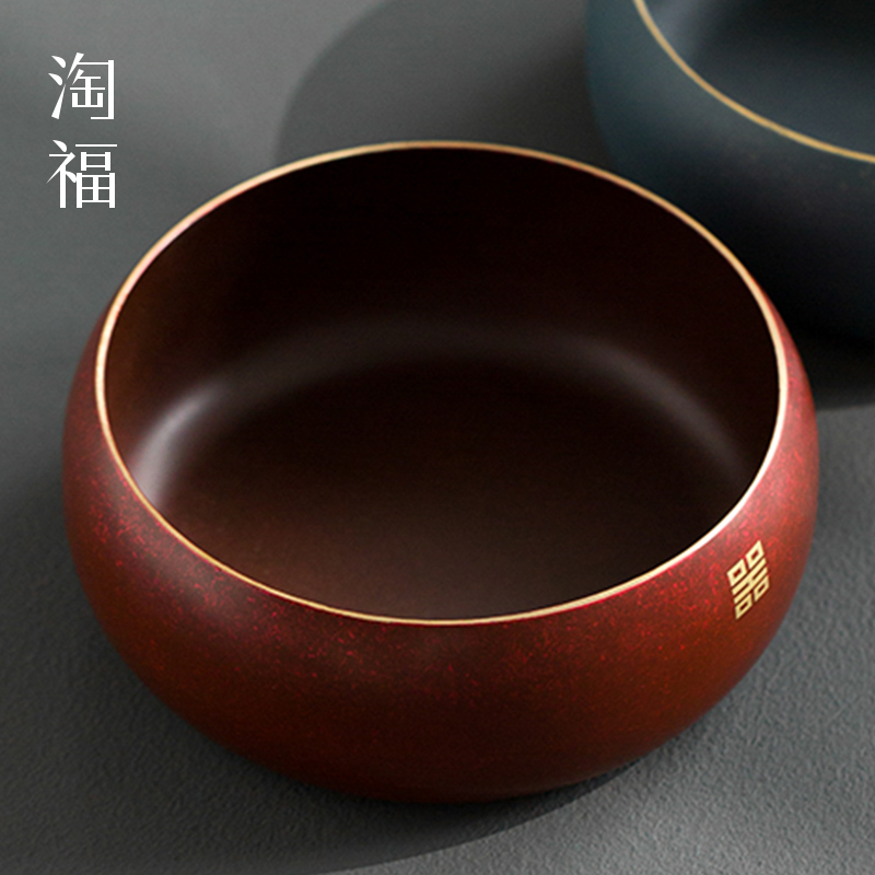 淘福纯铜大漆小建水茶洗水洗带盖茶渣桶笔洗功夫茶具配件茶道零配