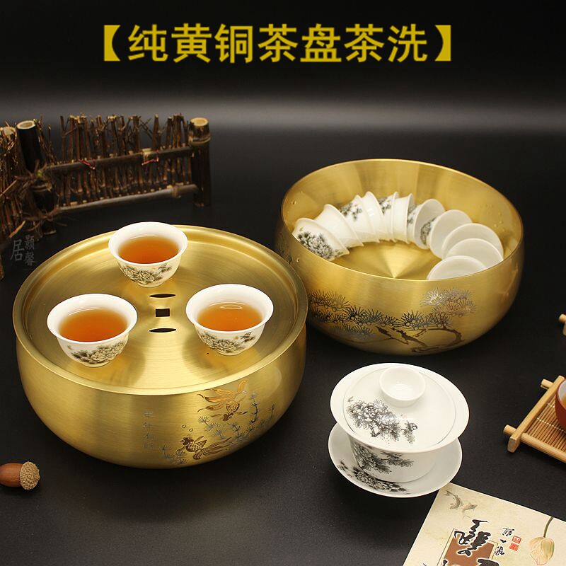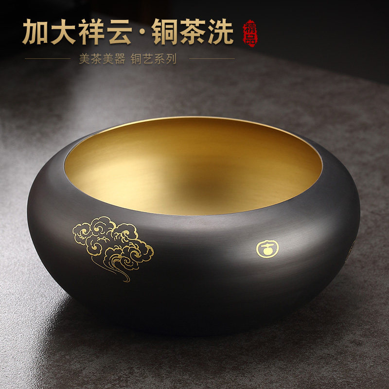 纯铜茶洗大号笔洗家用水洗水盂特大装洗茶杯盆的器皿功夫茶具配件