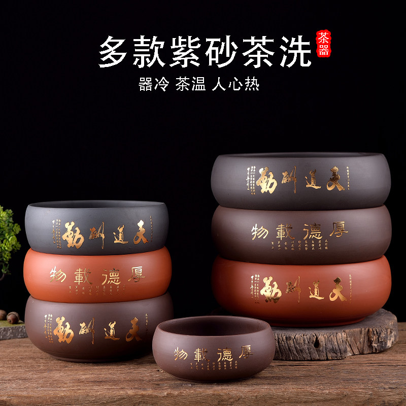 紫砂茶洗家用功夫茶具配件 茶杯洗水洗水盂大小笔洗烟灰缸花盆盆