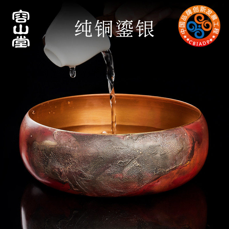 容山堂 紫铜鎏银茶洗家用大小号笔洗水洗水盂铜建水茶具配件