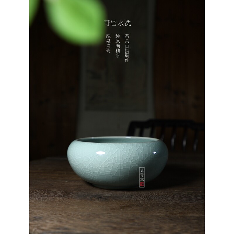 龙泉青瓷陶瓷茶洗大码笔洗哥窑开片水洗功夫茶具零配件水盂烟灰缸