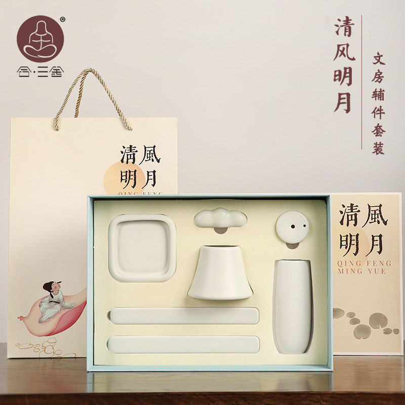天一堂书法水滴国画可爱创意陶瓷墨池笔山笔搁笔洗三件套毛笔架砚滴练习墨碟砚台带盖墨盒墨盘文房四宝