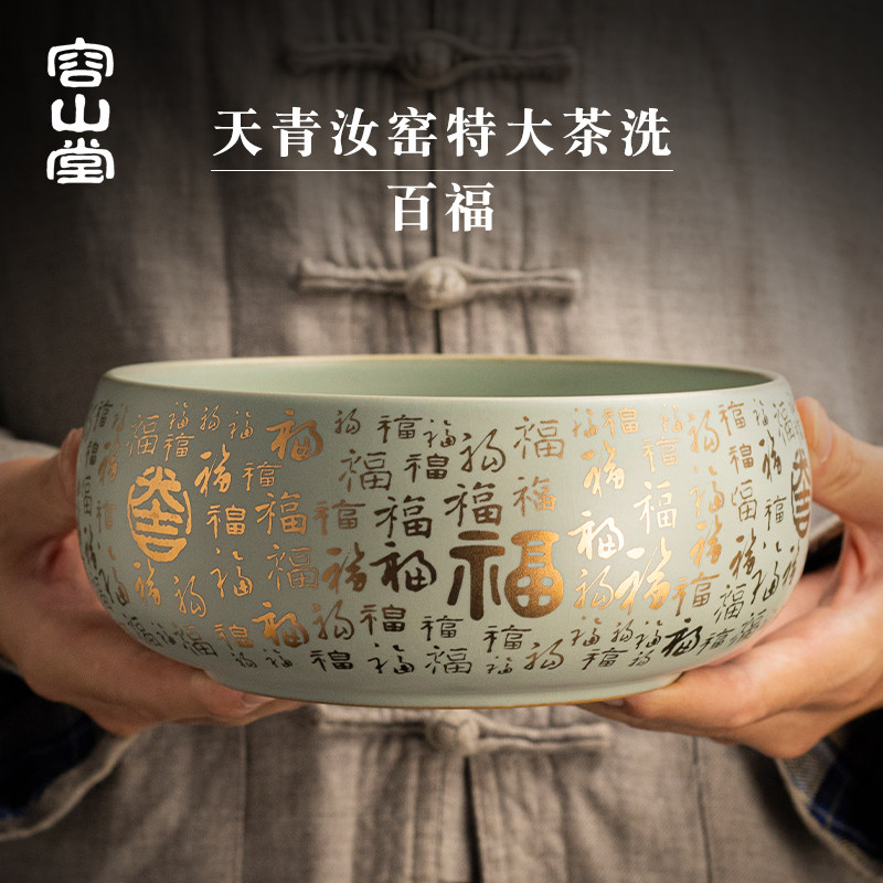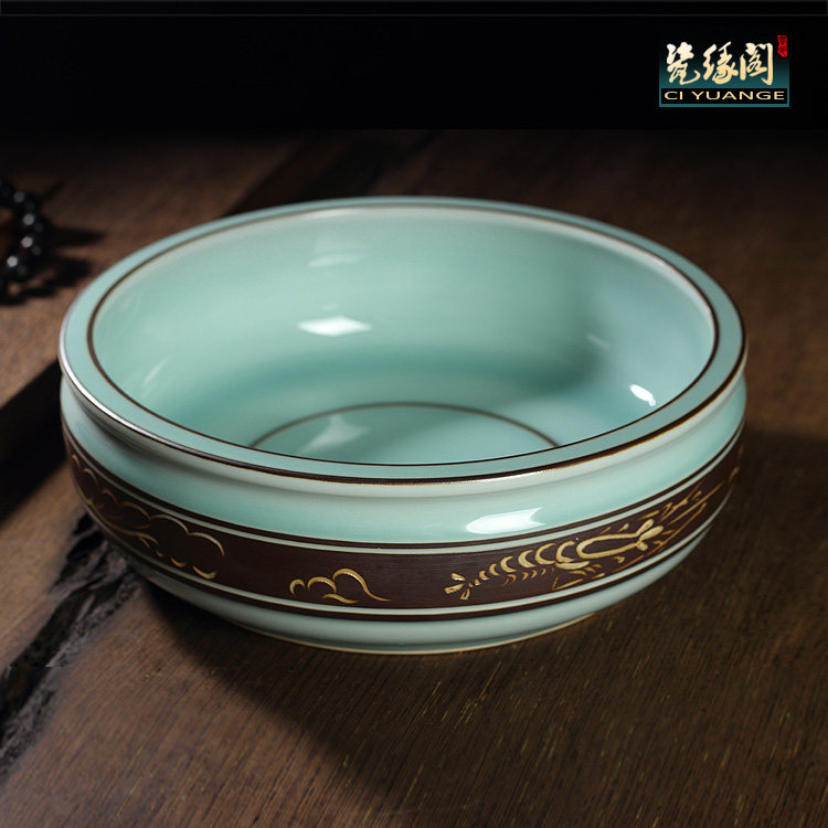 鎏金大号茶洗中式做旧手工茶杯洗陶瓷水盂茶渣盆笔洗功夫茶具配件