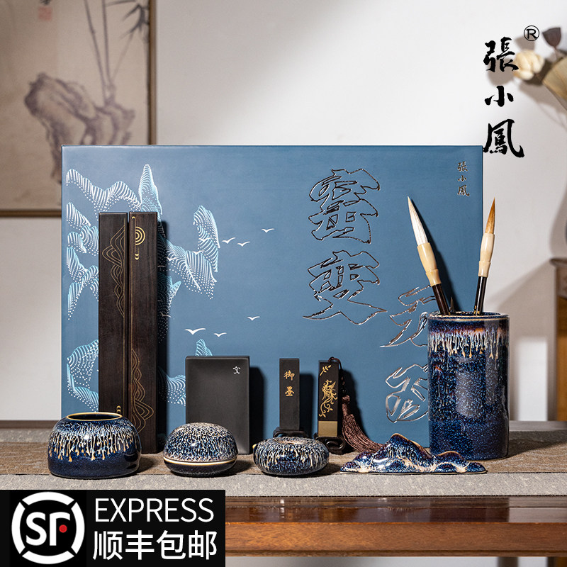 张小凤 凤吟萧兮 文房四宝套装笔墨纸砚全套初学者书法送礼专业级毛笔礼盒砚台端砚墨碟镇尺墨条毛笔字笔洗