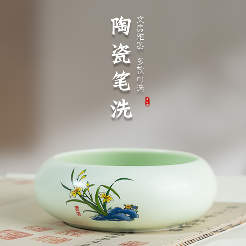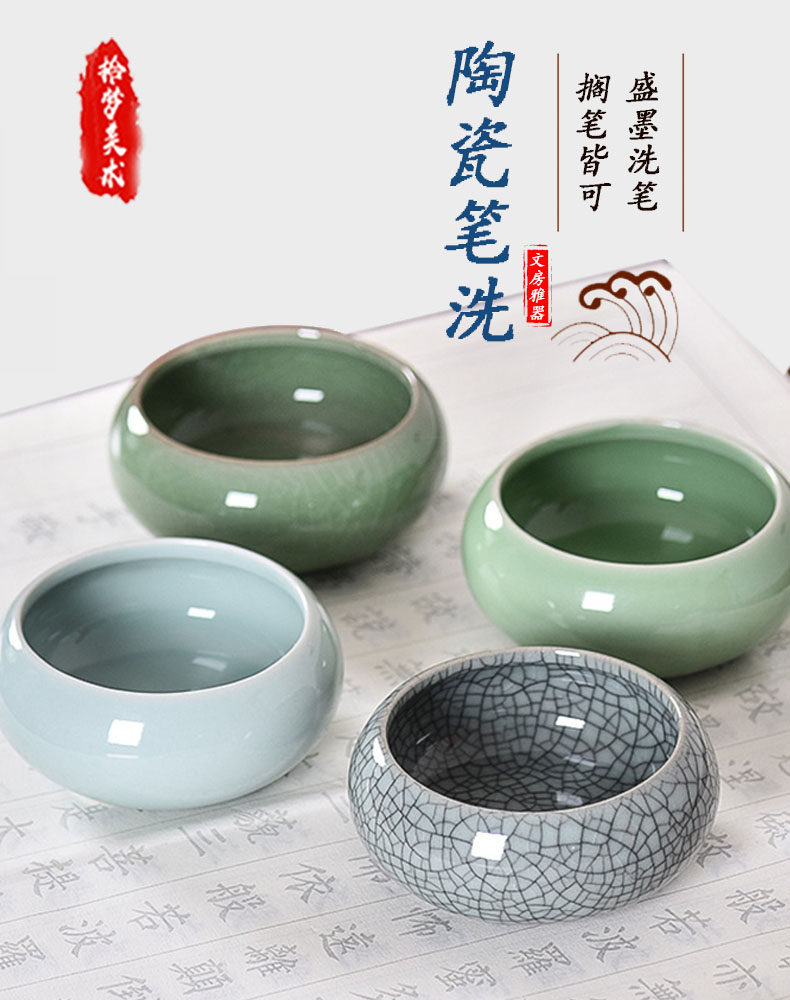 创意中国风毛笔陶瓷笔洗缸水洗水盂多功能学生用书法用品文房四宝