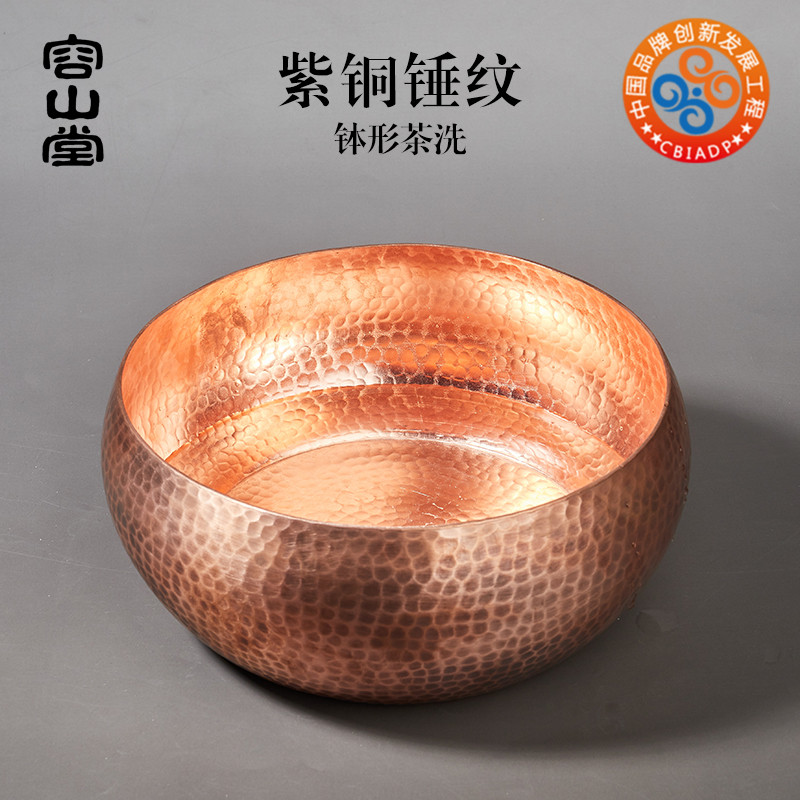容山堂铜茶洗大号茶水桶水盂笔洗手工锤目茶席洗茶杯碗茶具配件