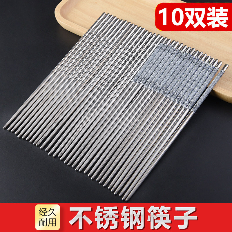 316筷子食品级不锈钢筷子耐高温家庭装长款防烫防滑304餐具快子