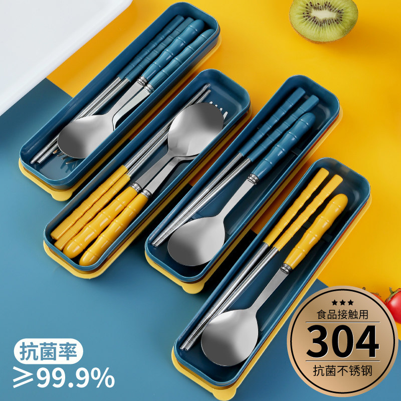 儿童筷子勺子套装叉子单人装学生收纳盒便携餐具三件套304不锈钢