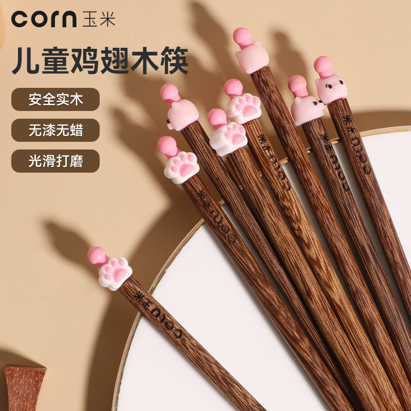 玉米宝宝筷子儿童6一12岁专用木头训练筷3幼儿园小短筷4小猫筷子