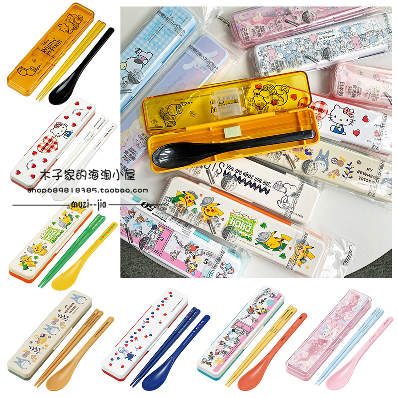 玉米便携餐具收纳盒木筷子勺子套装儿童卡通空盒学生外带