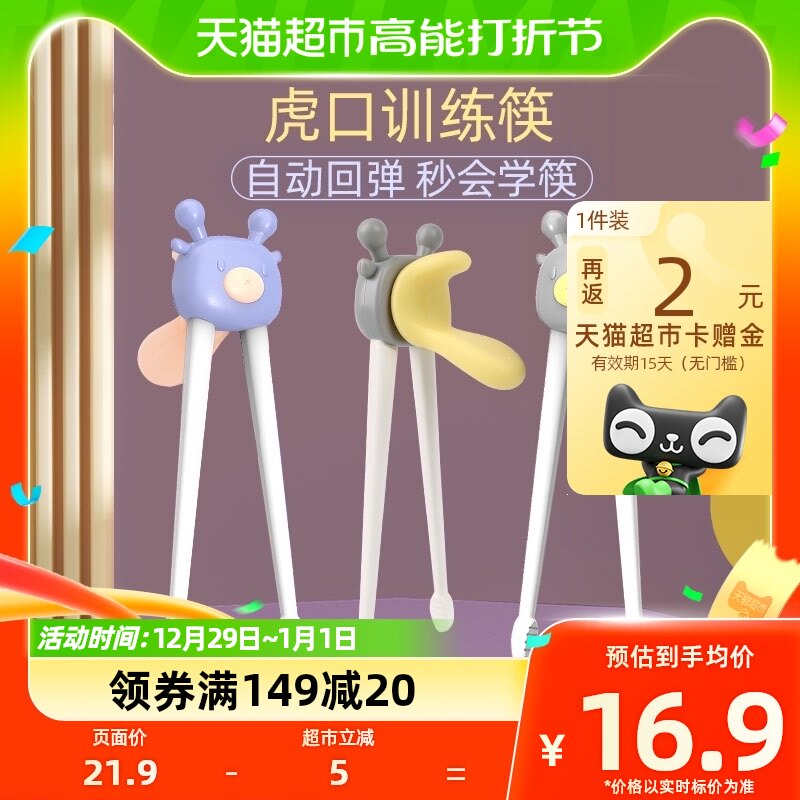 儿童虎口学习训练筷子幼儿辅助练习筷宝宝一段2 3-6-12岁专用三岁