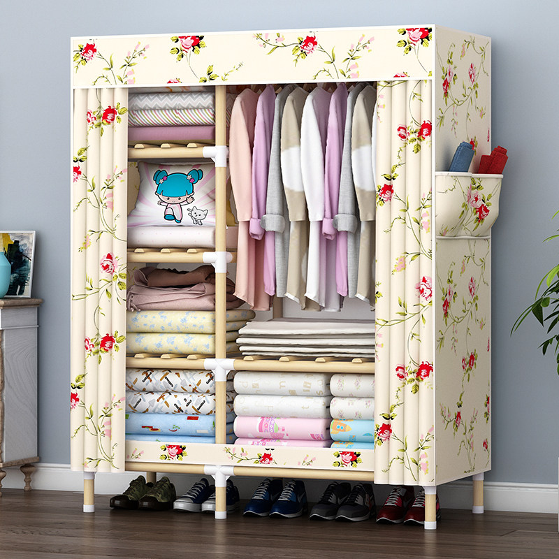 布衣柜简易衣柜家用卧室衣物收纳柜出租房用挂衣橱小房间结实加厚
