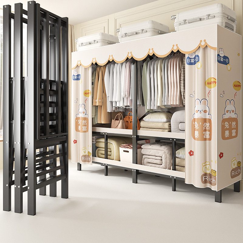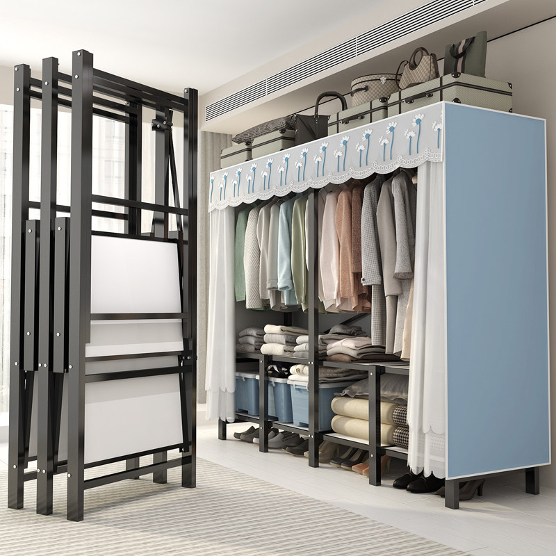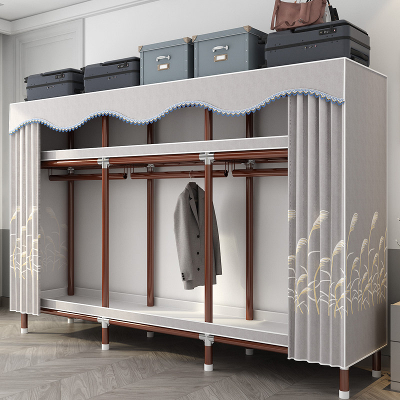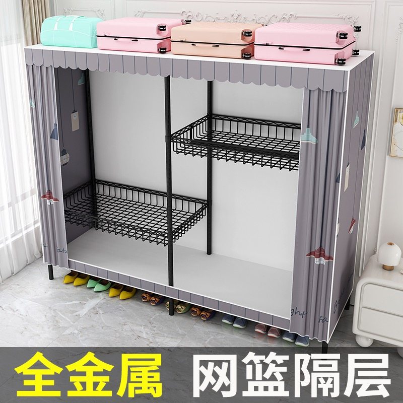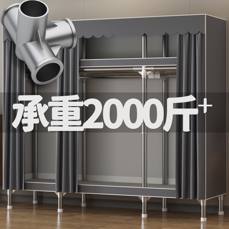 布衣柜全钢架加粗加厚家用卧室出租房用简易衣柜结实耐用组装结构