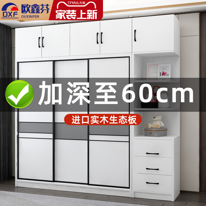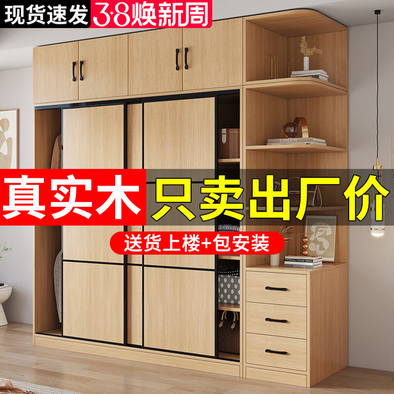 全实木衣柜家用卧室推拉门原木色简易柜子出租房屋小户型定制衣橱