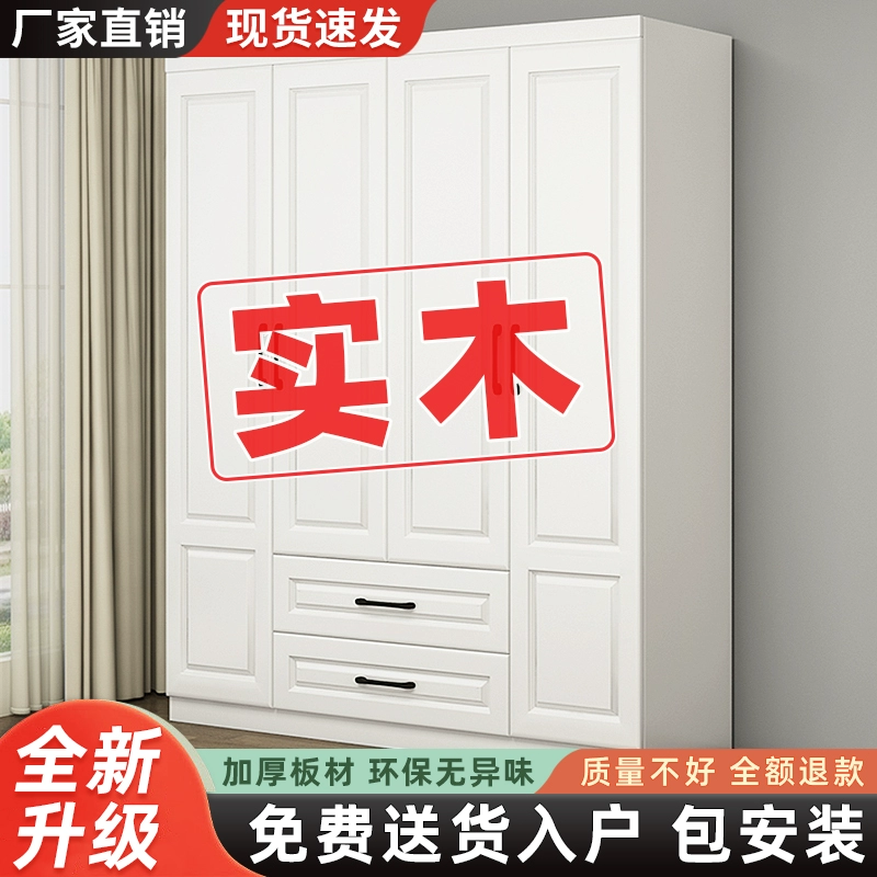 全实木衣柜家用卧室简易组装儿童柜子欧式爆款出租房用大衣橱定制