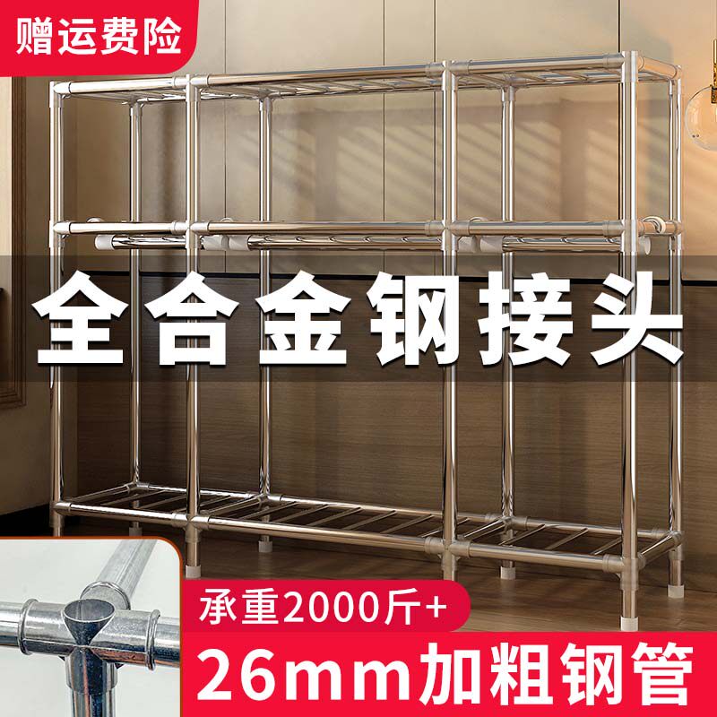 简易布衣柜家用卧室全钢架加厚高加粗出租房屋经济型组装结实耐用