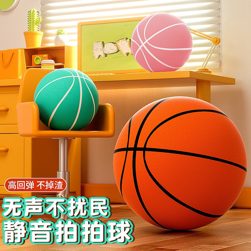 新款无声静音篮球不掉渣高回弹家用室内儿童7号蓝球架筐投篮海绵