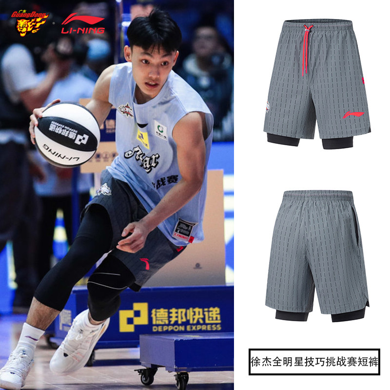 李宁cba徐杰全明星速干短裤美式四分假两件广东宏远篮球裤AKST695