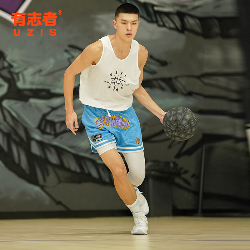 无界 有志者UZIS篮球美式小短裤男士夏季针织网眼不过膝球裤星芒