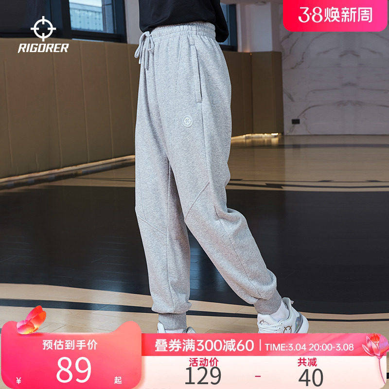准者卫裤男2024春季运动长裤篮球休闲宽松保暖裤子黑灰束脚长裤
