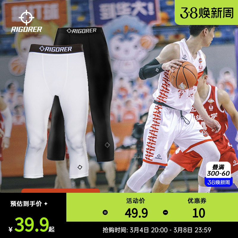 准者健身裤篮球紧身裤男七分裤跑步防撞护膝打底排汗速干压缩长裤