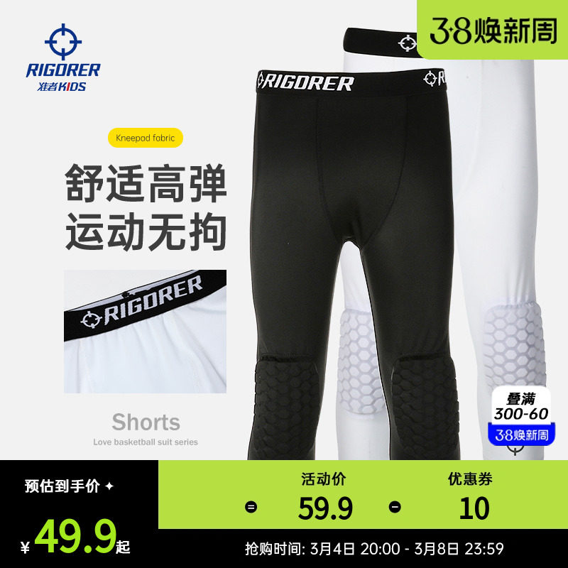 准者儿童健身裤男女童防撞篮球打底裤户外运动训练裤七分紧身裤子