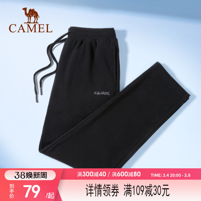 骆驼运动裤男秋冬季宽松束脚长裤黑篮球跑步舒适休闲加绒卫裤男子