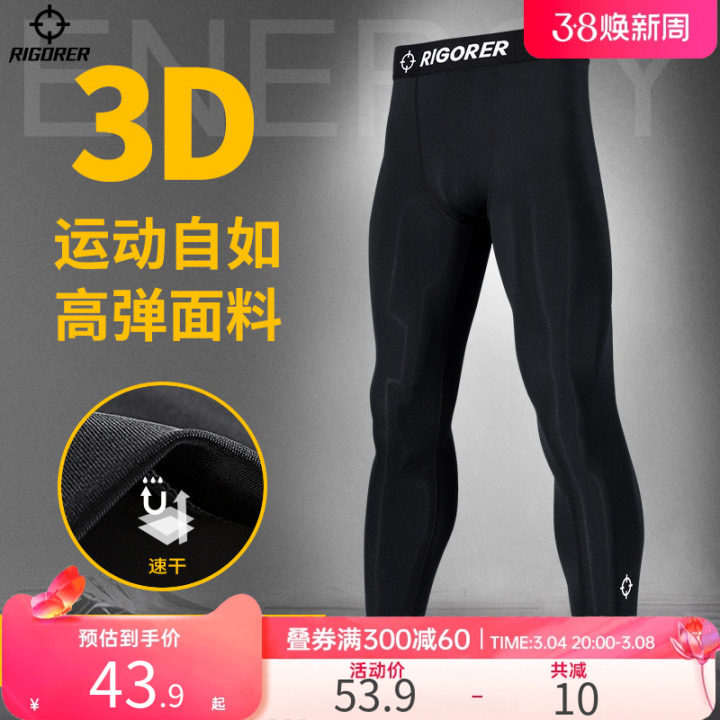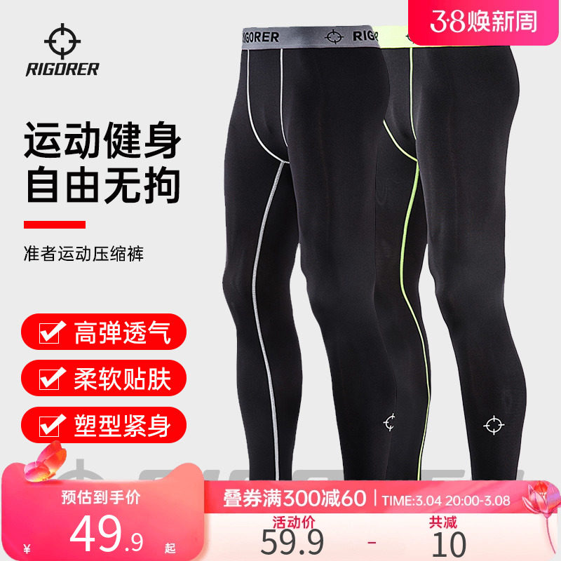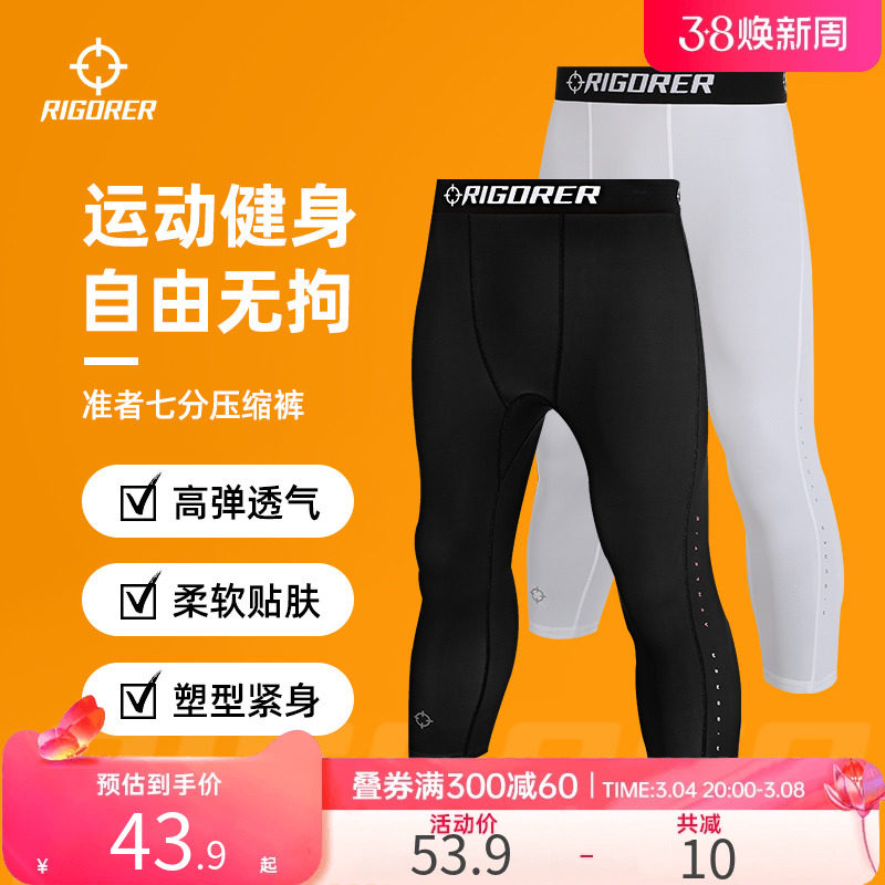 准者紧身裤男士篮球高弹训练九分健身裤跑步运动滑雪打底春季七分