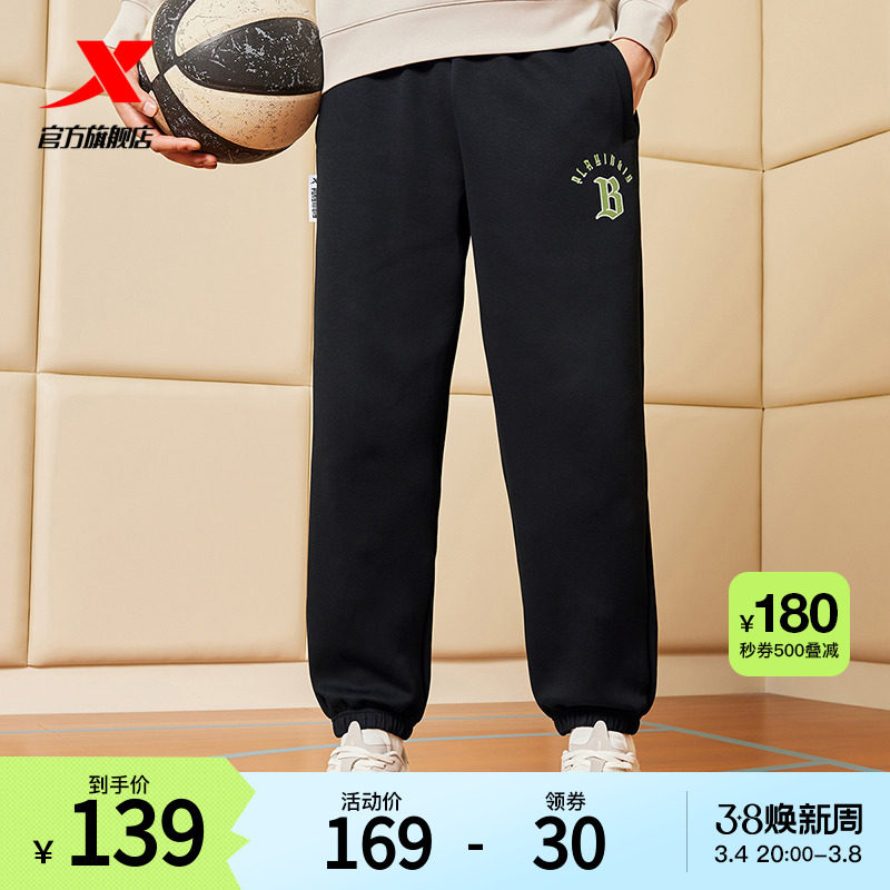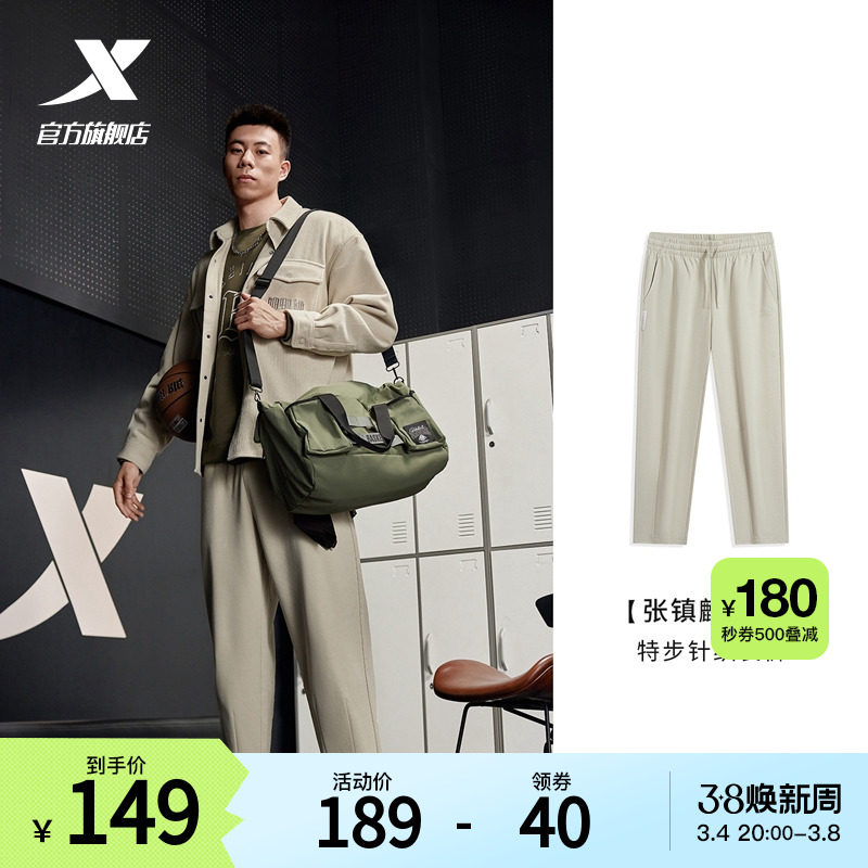 张镇麟同款|特步男运动裤2024新款宽松直筒针织长裤篮球卫裤男裤