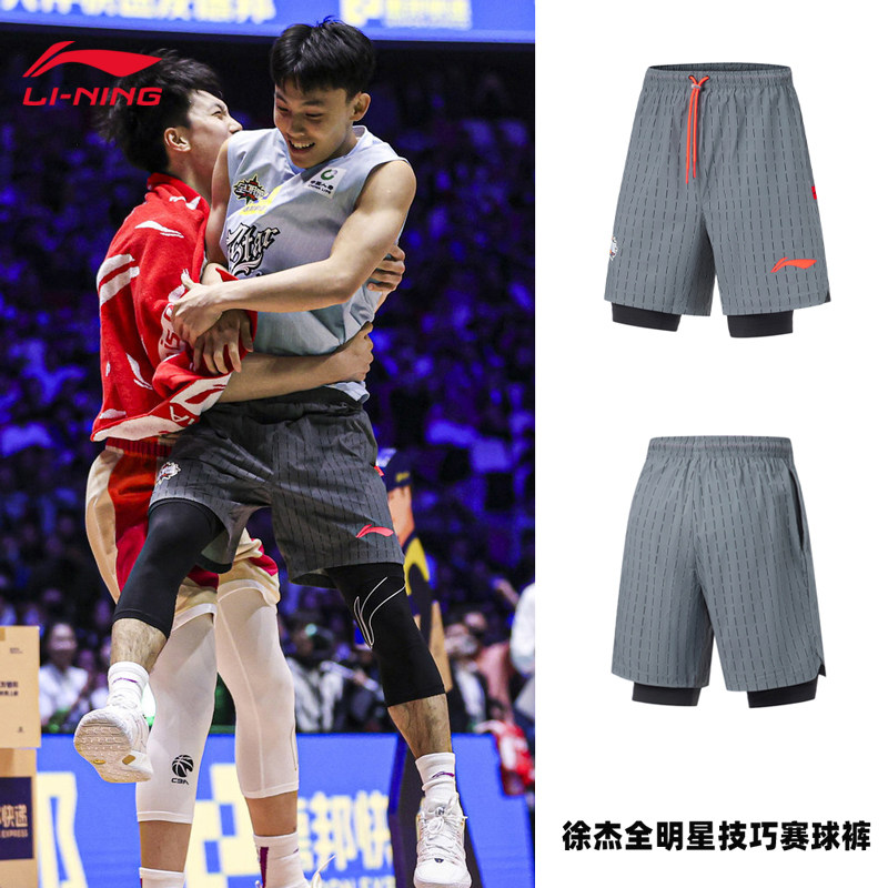 李宁篮球裤CBA徐杰全明星单项赛五分短裤四分假两件运动裤AKST695