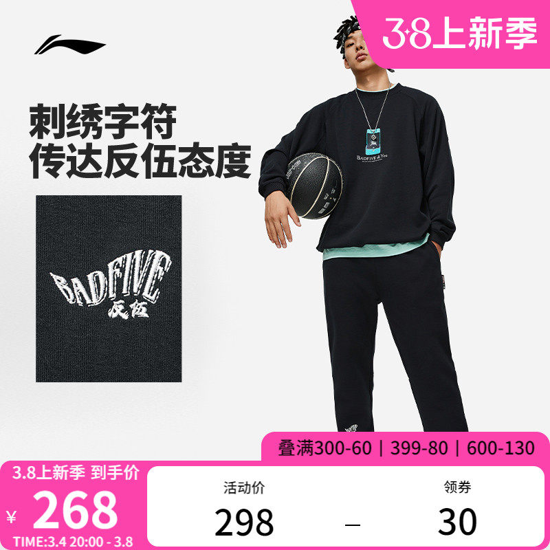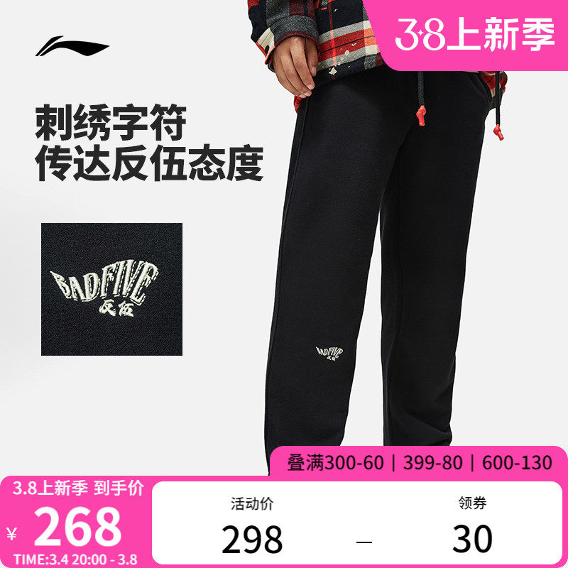 李宁反伍BADFIVE篮球系列卫裤男士春季直筒针织运动长裤