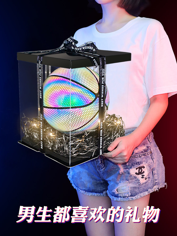 马布里正品反光篮球夜光彩虹色发光荧光蓝球送男女朋友礼物限量版