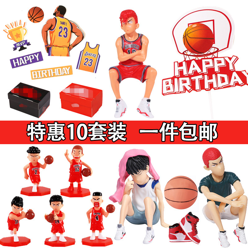 篮球小子蛋糕装饰摆件男孩打篮球主题球鞋球框插牌生日蛋糕插件