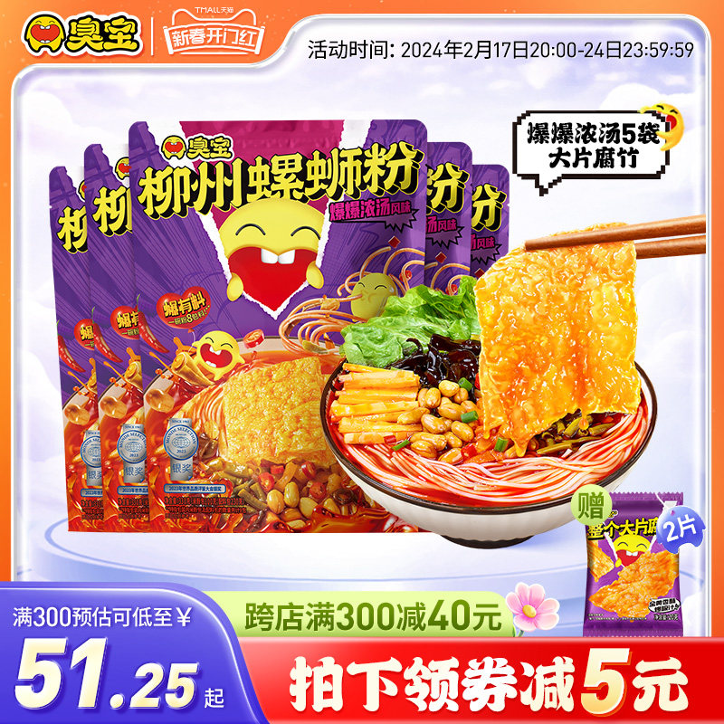 臭宝螺蛳粉大片腐竹柳州螺狮粉广西特产螺丝粉330g夜宵米粉5袋装