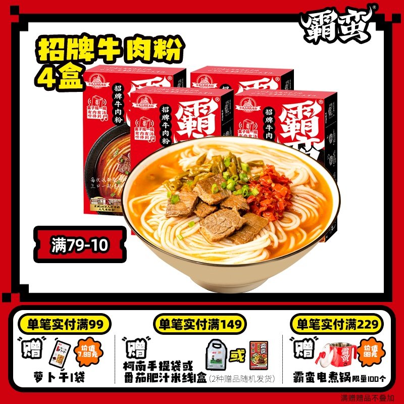 【本店爆品】霸蛮招牌牛肉粉290.6g*4盒 湖南常德米粉津市牛肉粉