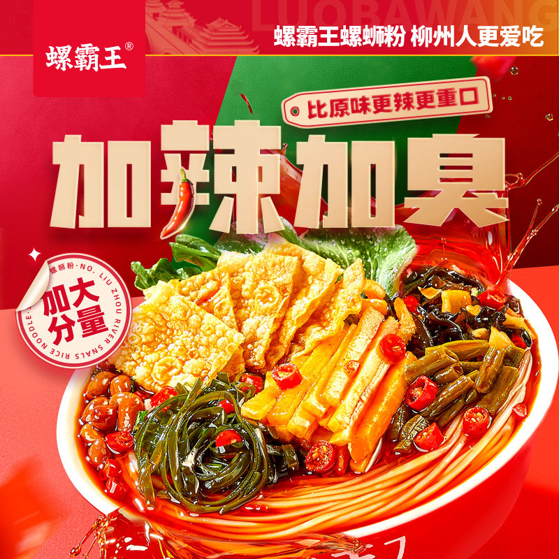 【U先试用】螺霸王螺蛳粉加辣加臭370g*1袋广西柳州米粉配1包腐竹