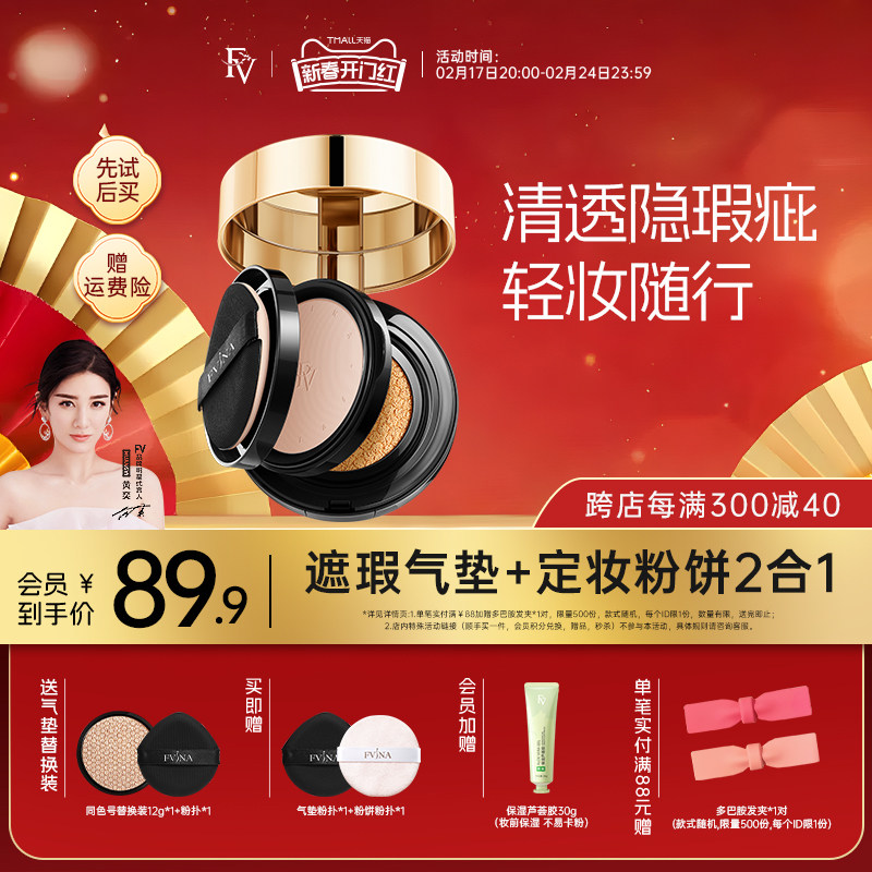 FV双层气垫遮瑕持久不脱妆秋冬保湿养肤bb霜粉底液定妆粉饼二合一