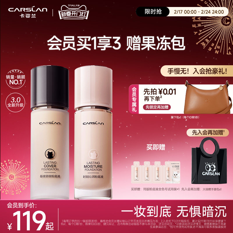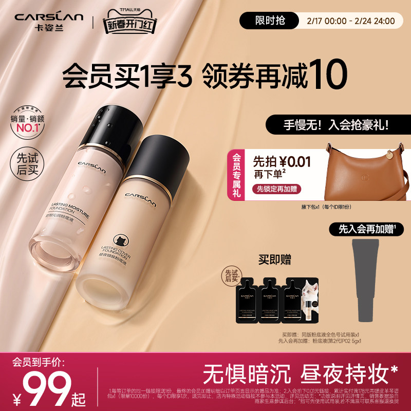 [升级版3.0]卡姿兰小奶猫夜猫粉底液水润控油持久不脱妆混干油皮