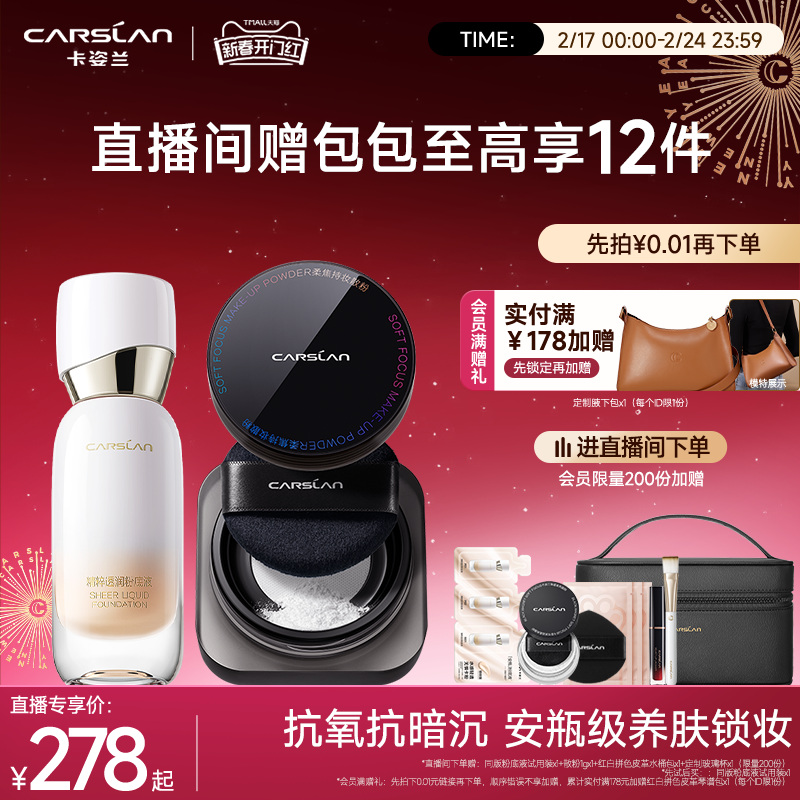 【直播间更划算】卡姿兰安瓶粉底液养肤持妆秋冬保湿黑磁散粉定妆